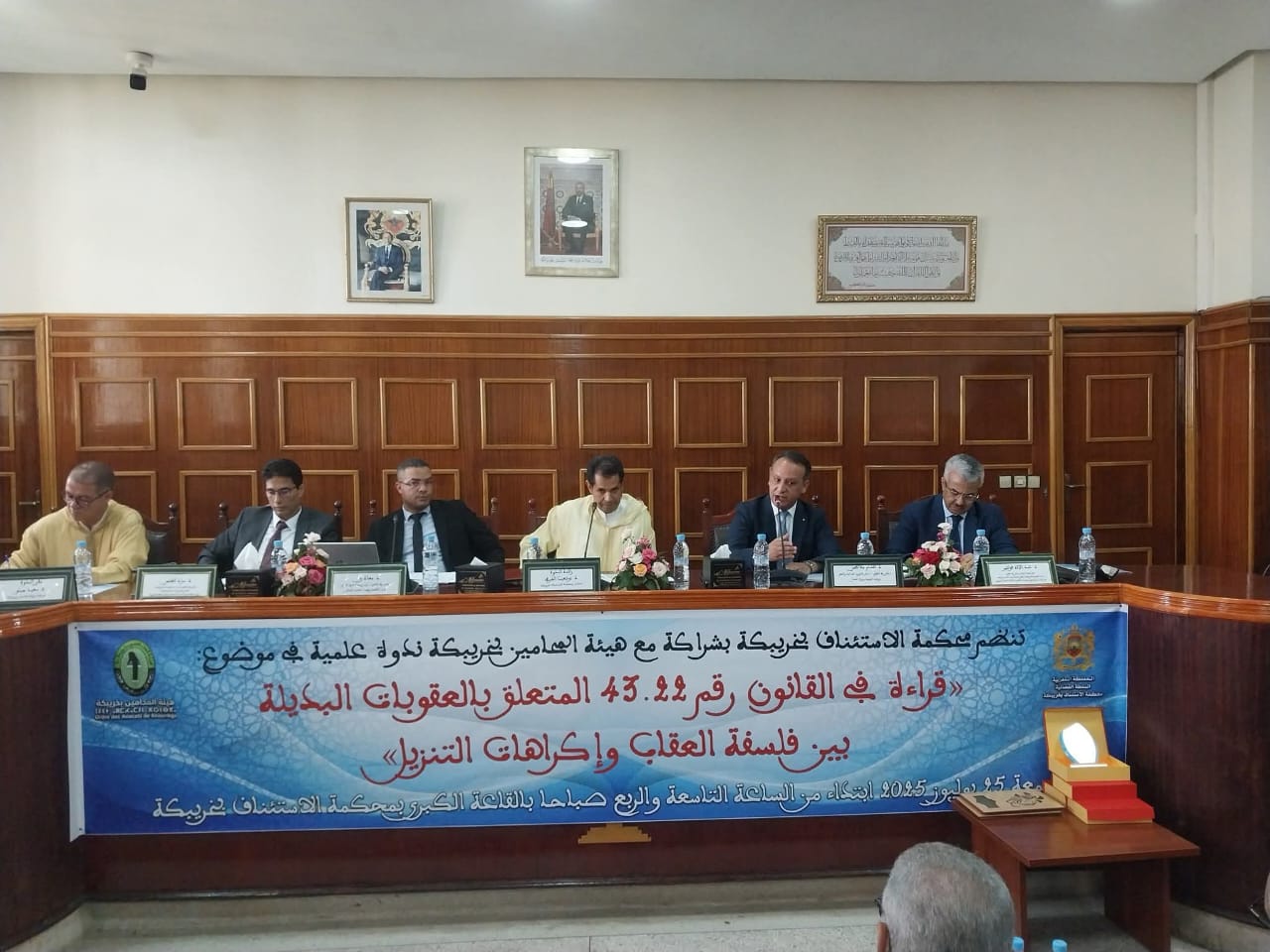 نظمت صباح يوم أمس الجمعة 25 يوليوز 2025 ندوة علمية في موضوع: قراءة في القانون رقم 43.22 المتعلق بالعقوبات البديلة بين الفلسفة العقابية وإكراهات التنزيل بمحكمة الاستئناف بخريبكة .