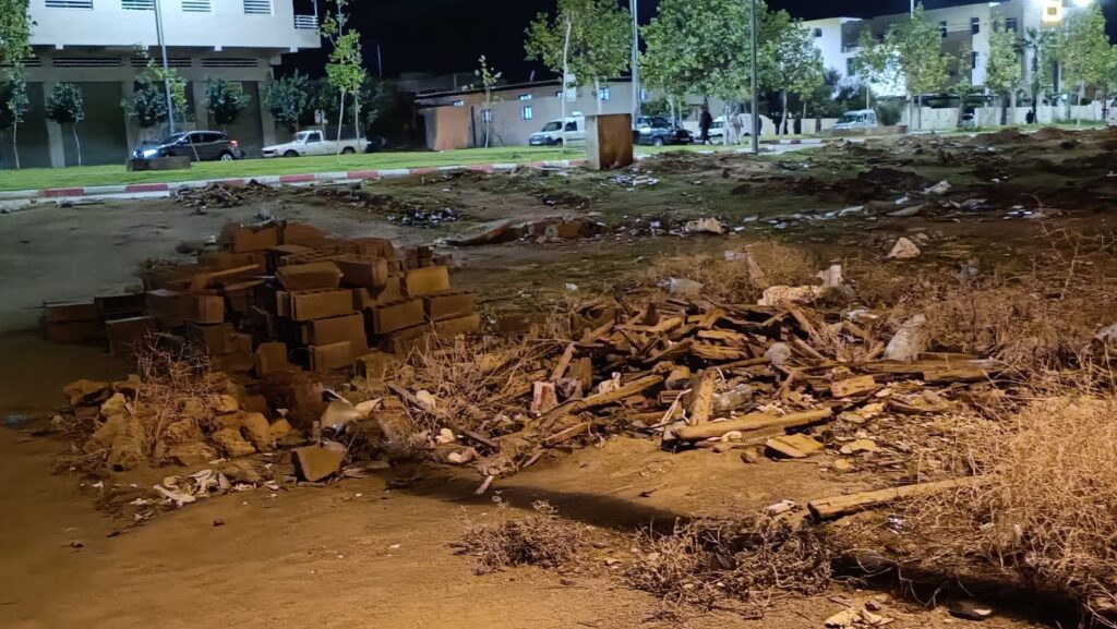كما ان الأتربة ومخلفات البناء منتشرة في كل الأزقة والشوارع، بما فيها الشارع الرئيسي الذي يُقدمه المجلس الجماعي كنموذج للتهيئة، في مشهد يوحي وكأن المدينة خرجت من حرب، إلى جانب ذلك، تحولت البقع غير المبنية إلى مطارح عشوائية للنفايات المنزلية ومخلفات البناء وأكياس الأتربة الصناعية، ما يزيد من تدهور المشهد البيئي ويهدد السلامة الصحية للساكنة، خاصة عند اختلاط هذه النفايات بمياه الأمطار.